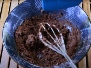 - Add the dry mix: Stir in the flour, cocoa powder, baking soda, and salt. Mix until a thick dough forms.